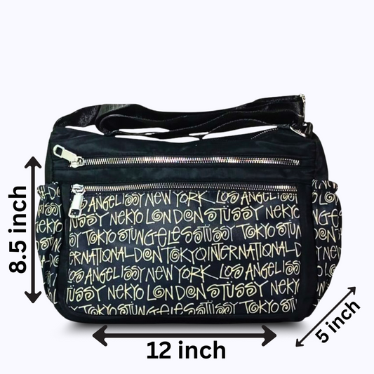 Alphabet printed nylon shoulder bag