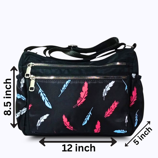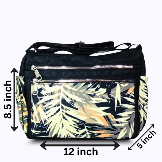 Multicolor Leaves Printed nylon shoulder bag