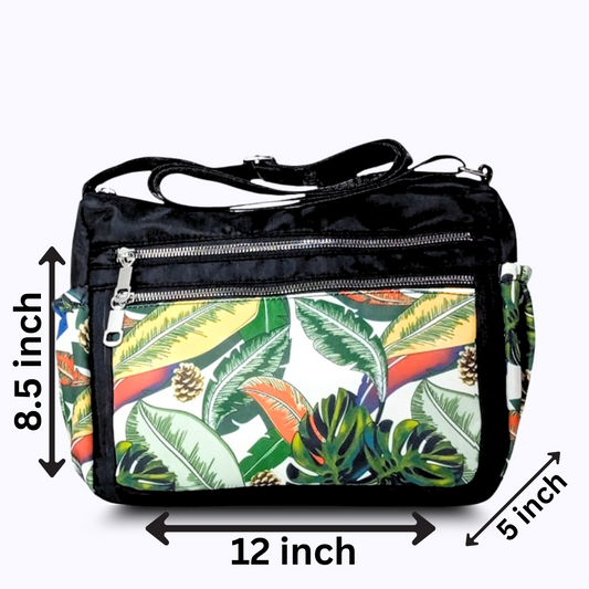 Floral leaves printed nylon shoulder bag