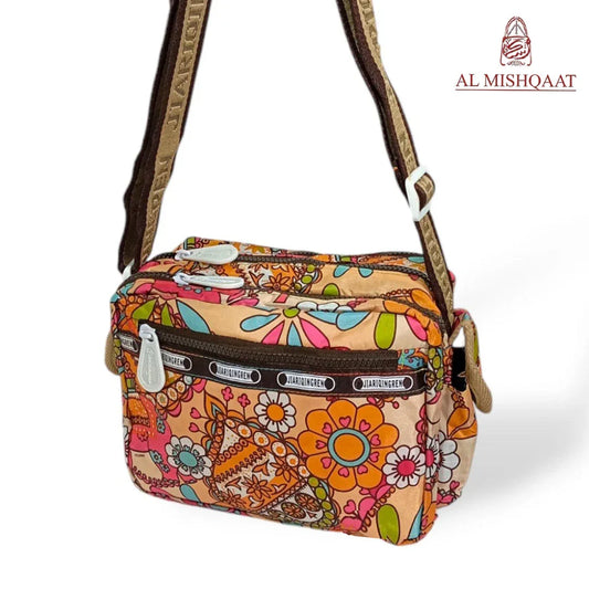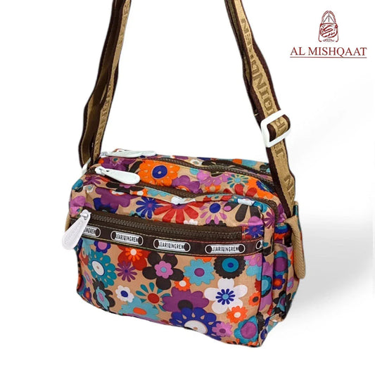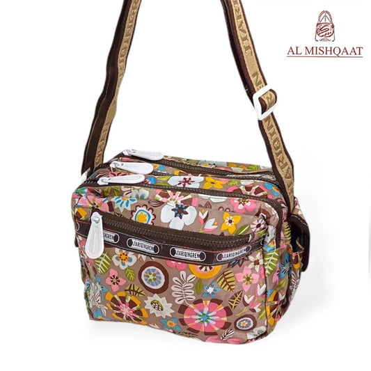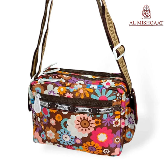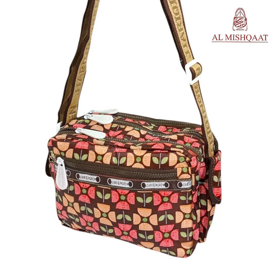 Brown Floral triple zipper bag