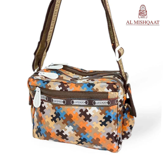Brown puzzle triple zipper bag