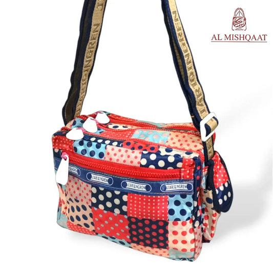 Multicolor dotted triple zipper bag