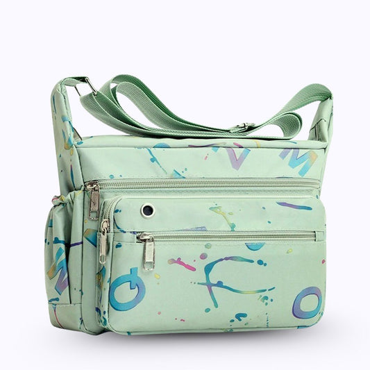 Graffiti printed nylon shoulder bag